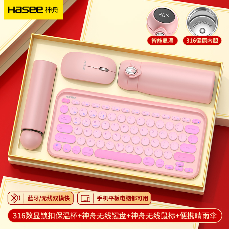 【產(chǎn)品配置】鍵盤S5+鼠標(biāo)+彈跳杯+五折傘 【產(chǎn)品型號(hào)】LXX-05 【產(chǎn)品顏色】櫻花粉,薄荷綠,寶石藍(lán) 【定制工藝】印刷、雕刻 【包裝尺寸】40*29.5*7.8cm