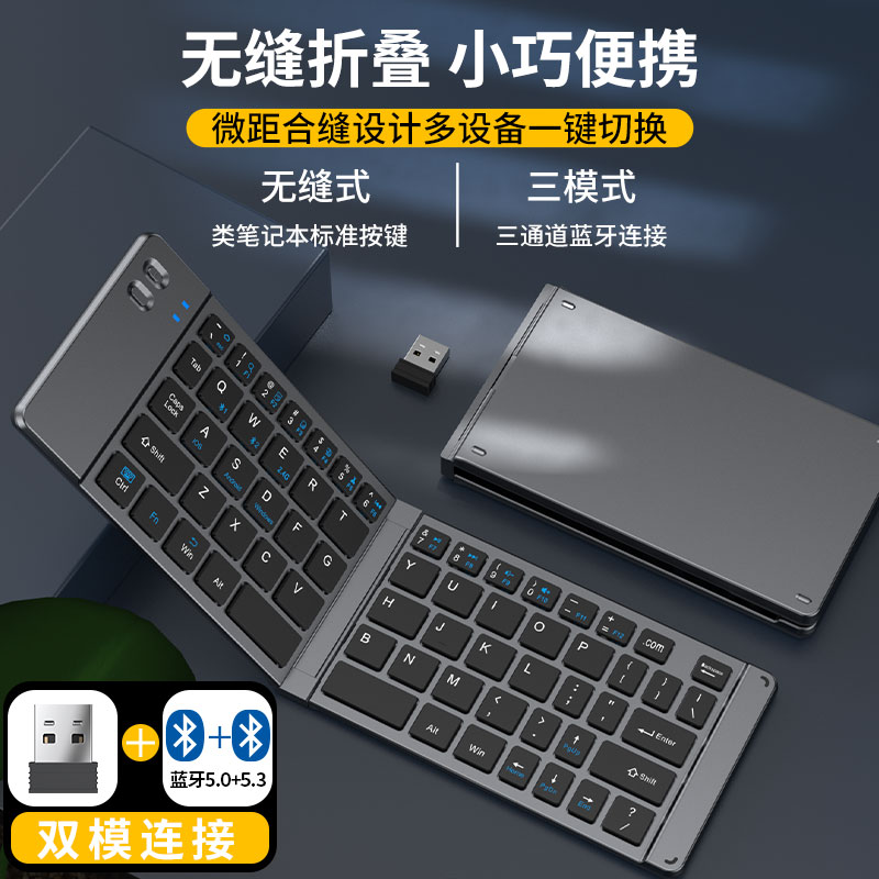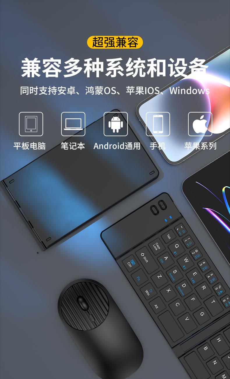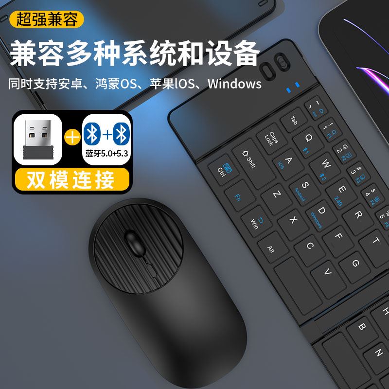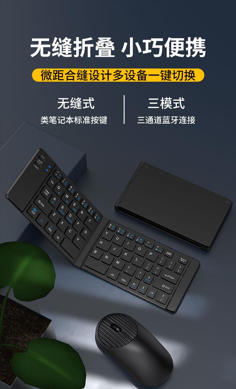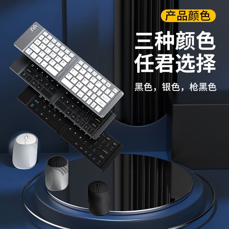 折疊三模充電鍵盤鼠標(biāo)迷你靜音鍵鼠套裝適用平板手機(jī)筆記本
