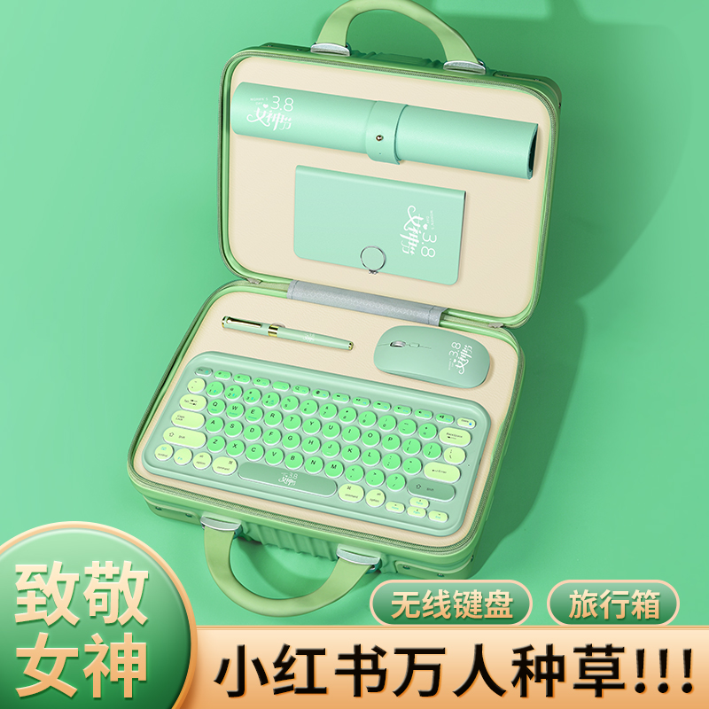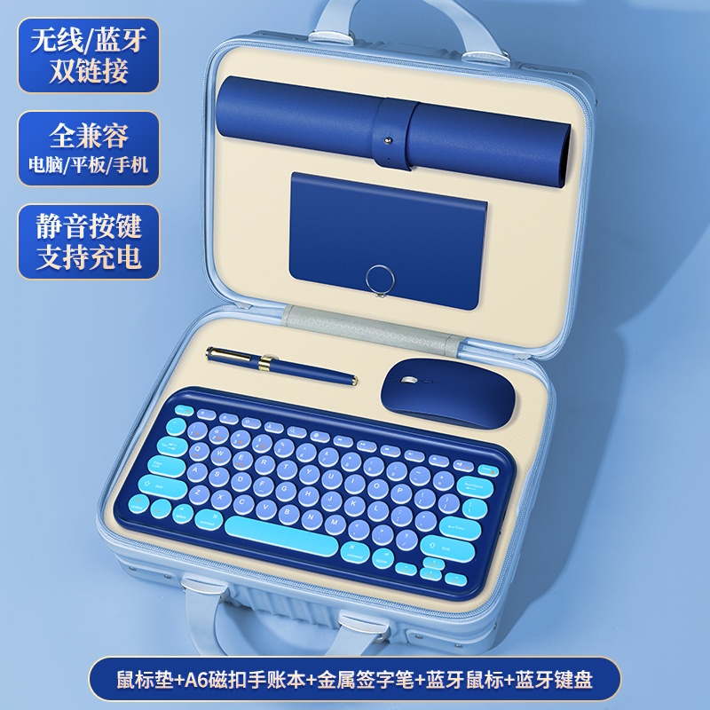 【產(chǎn)品配置】旅行箱5件套S5鍵盤+本+筆+鼠標(biāo)+鼠標(biāo)墊 【產(chǎn)品型號】LXX-01 【產(chǎn)品顏色】櫻花粉,薄荷綠,寶石藍(lán) 【定制工藝】印刷、雕刻 【包裝尺寸】32*23.5*16cm